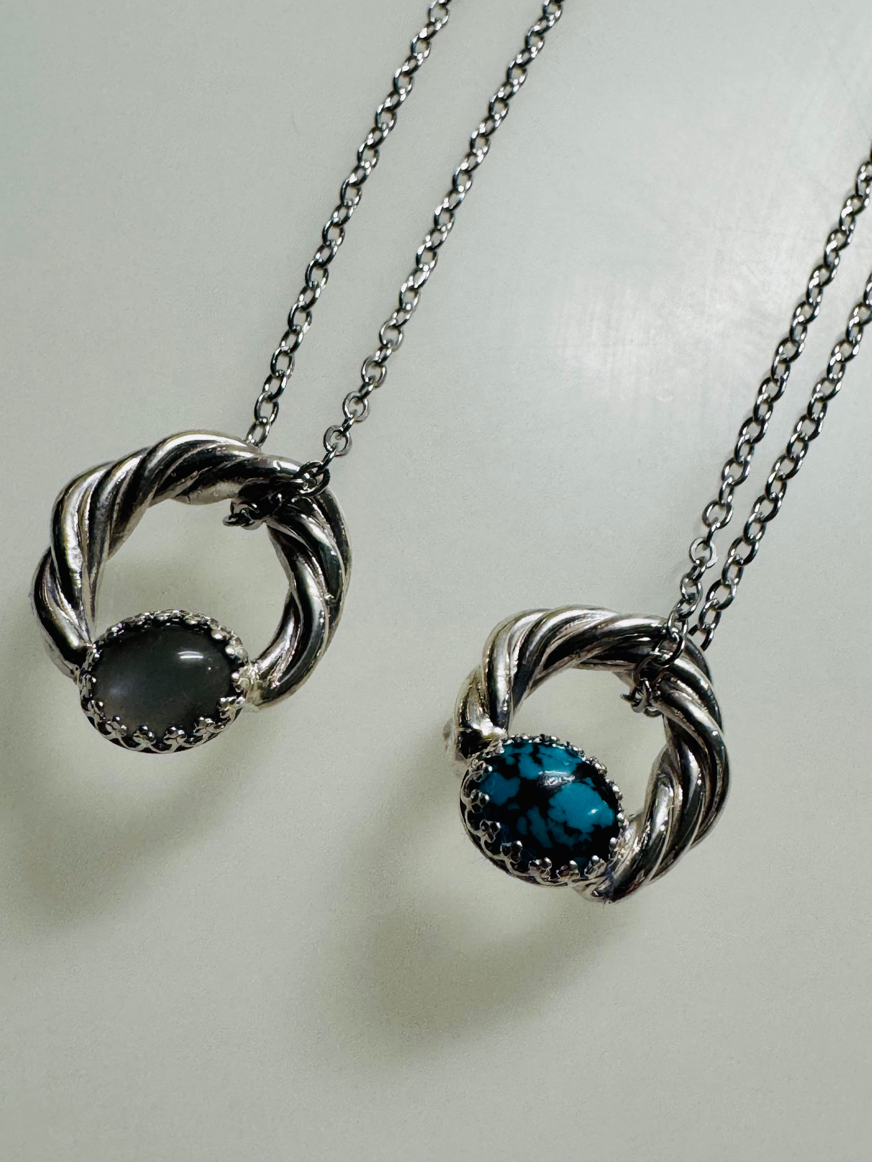 素材:silver925 ムーンストーン・ターコイズ 美しくねじれたデザインが特徴。